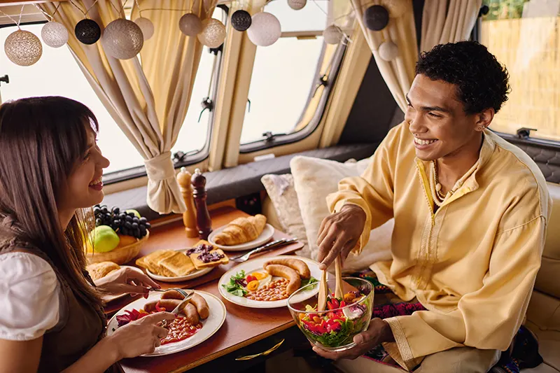 Enjoy a full buffet of Egyptian and international cuisine, accompanied by soft background music.