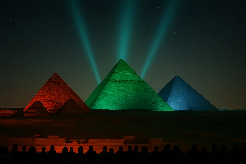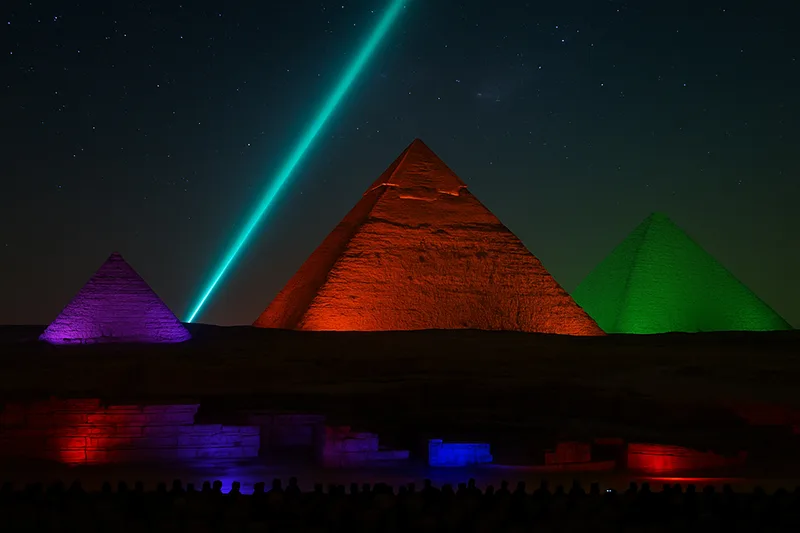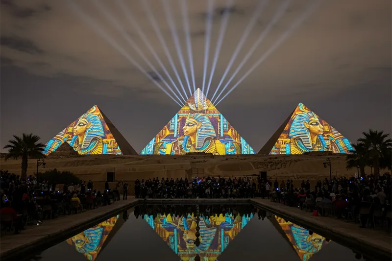• See the Great Pyramid, Khafre, and Menkaure dramatically lit with colorful projections.